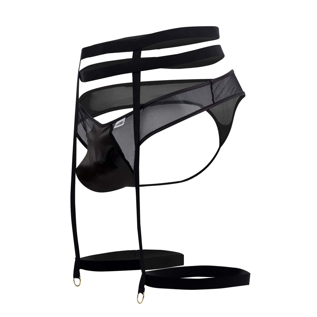 JCSTK - CandyMan 99677 Garter Thongs Two Piece Set Black