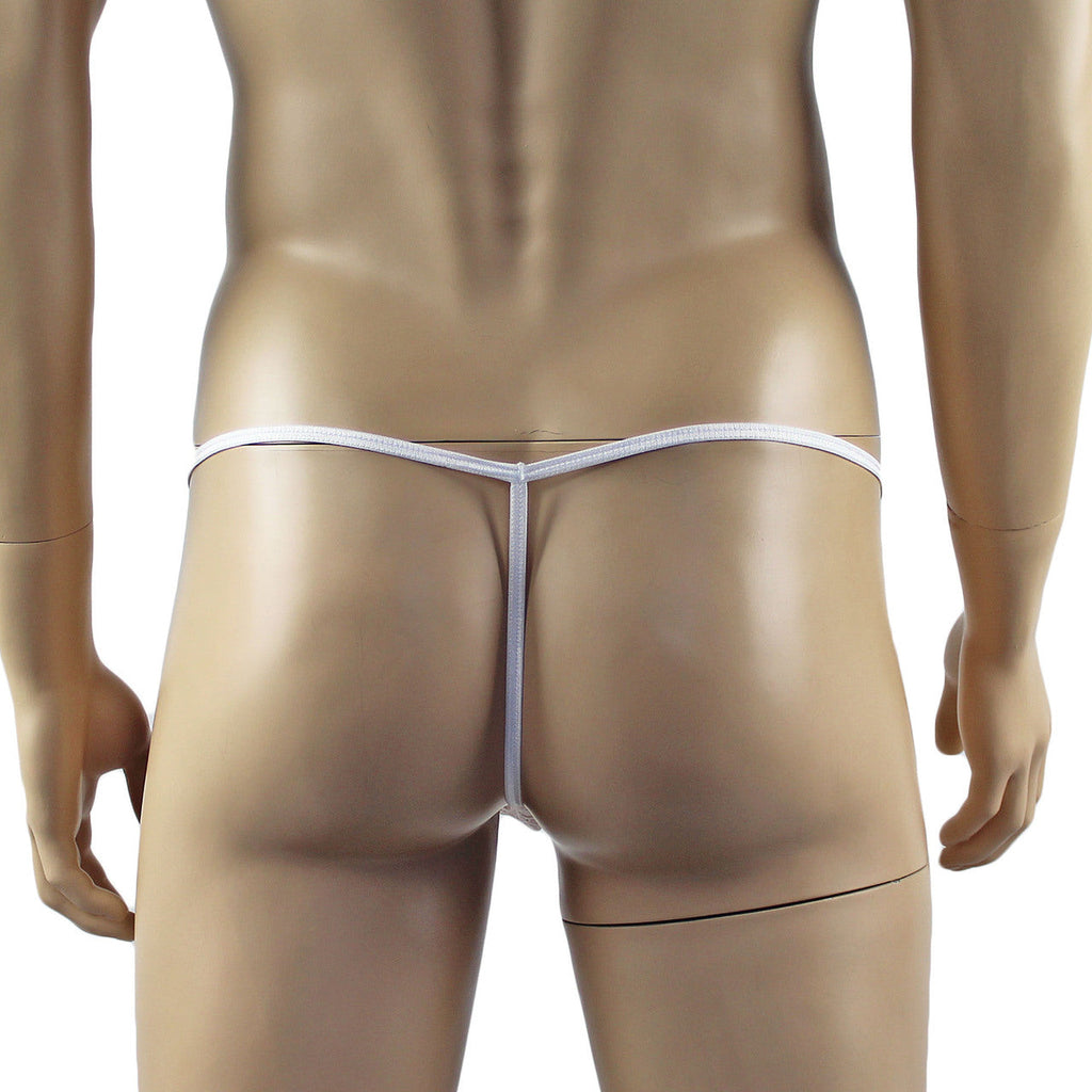 Mens Tease Circle Lace Pouch G string with Cute Bow Front White