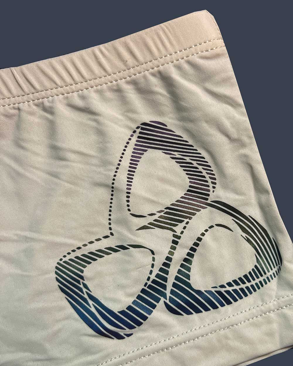These men's trunks from Private Structure feature a sleek and minimalistic design, offering a refined and modern look. The smooth, lightweight fabric ensures a snug yet breathable fit, while the subtle black geometric logo on the front adds a stylish touch. The back includes a ruched seam for a better contouring effect, enhancing the overall fit and support.