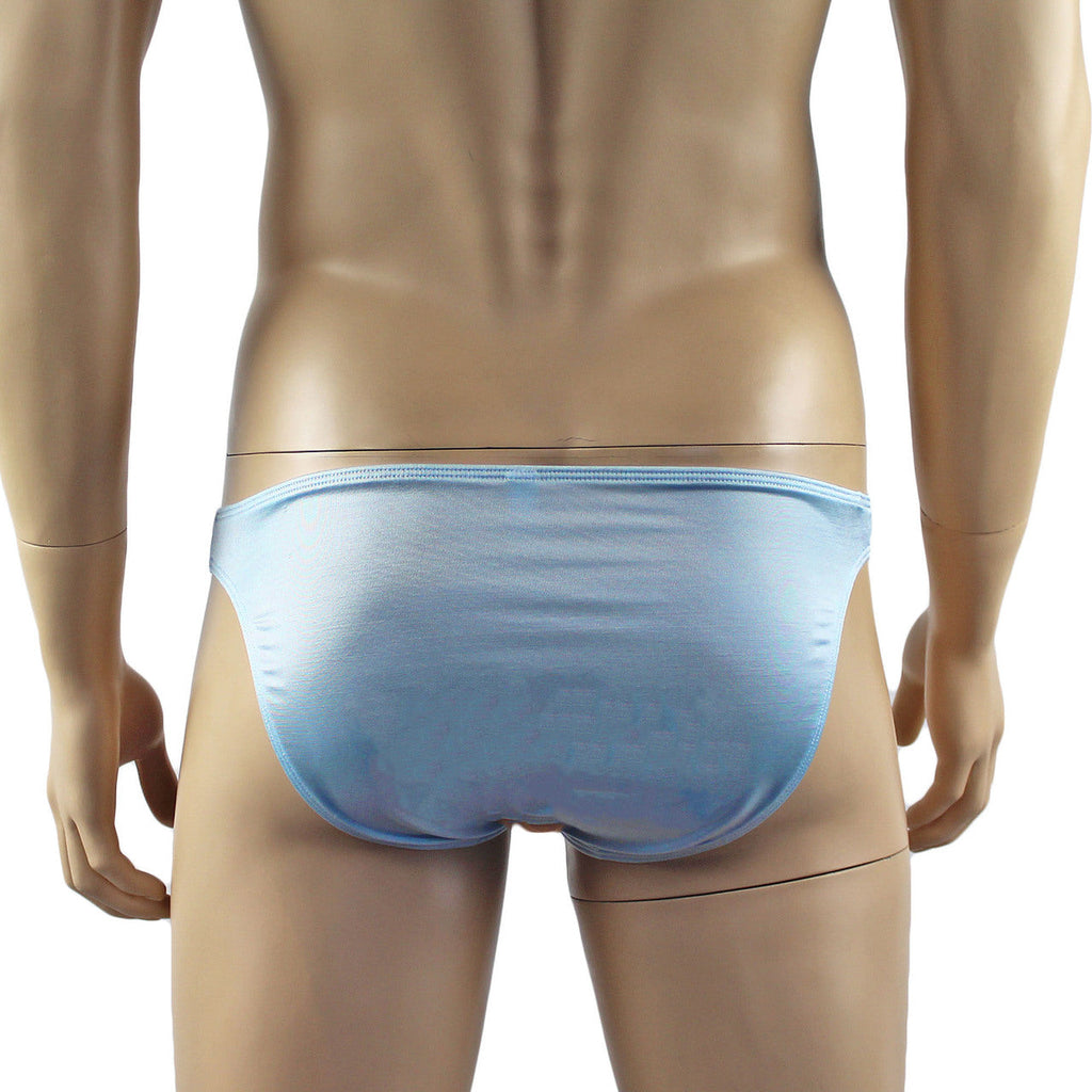 Mens stretch shiny lycra and floral lace classic Bikini Brief with satin bow front